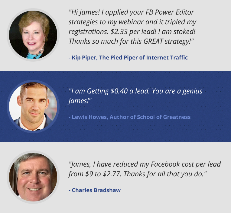 "James' FB Video Ads training gave me everything I needed from A to Z for creating, setting up and executing successful video ad campaigns."