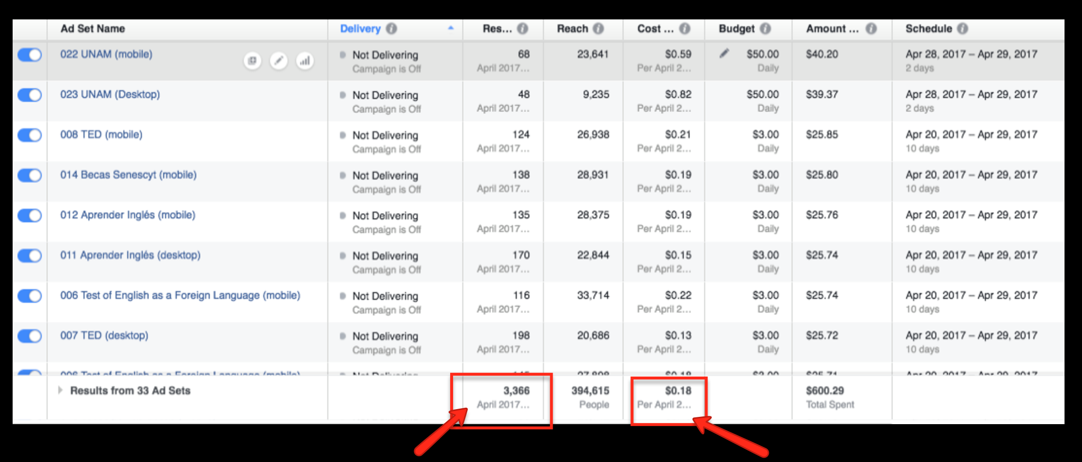 As you can see from the screenshots, Nikki was able to attract 3,366 new subscribers to her email list in just 3 days for an average cost of just $.18 per subscriber!