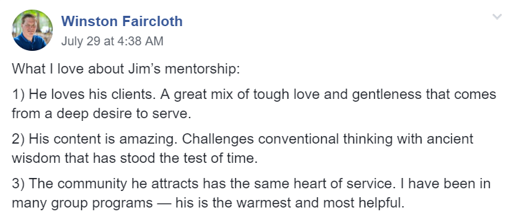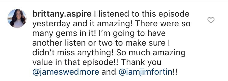 I originally connected with Jim when he was a guest on The Mind Your Business Podcast, and his episode (episode 114), has since become our most downloaded episode in the HISTORY of my podcast, and listeners simply can't get enough of Jim! This is exactly why I knew I had to invite him to speak at BBD LIVE and record TWO more mind-blowing episodes for the podcast (episodes 141 and 185). I have also experienced first-hand the transformations Jim’s student’s can accomplish because he coached ME, one-on-one, for six months during 2017 and 2018, and my business has continued to DOUBLE its launch revenue ever since!